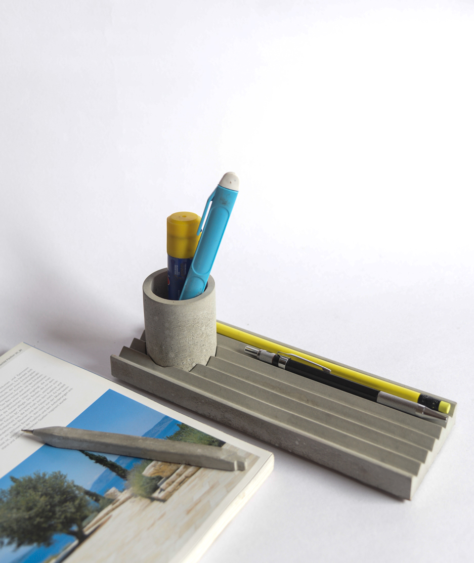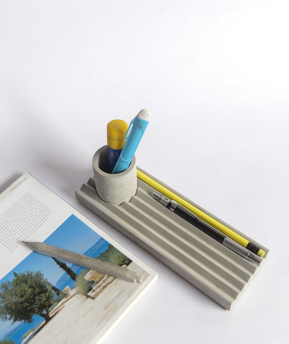 A simple horizontal V-grooved tray with a small cylindrical stand, a contemporary desk organizer is just what you need to de-clutter and organize everything you need.